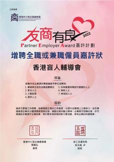 獎項簡介:計劃旨在鼓勵本地企業聘請更多社會上不同需要人士就業,對象範圍包括:傷健人士、再培訓人士、更生人士、少數族裔、退休人士及持有資歷架構認可資歷的人士等。